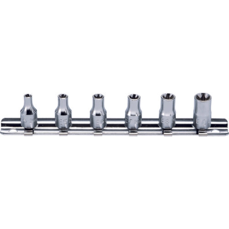 The Ko-ken RS2425/6 is a 6-piece 1/4" Sq. Dr. TORX Socket Set, featuring sizes E4 through E10. Recognized for their efficiency, TORX sockets provide superior torque transfer, reduced load, and minimal tool slippage. This set includes six TORX sockets, moun