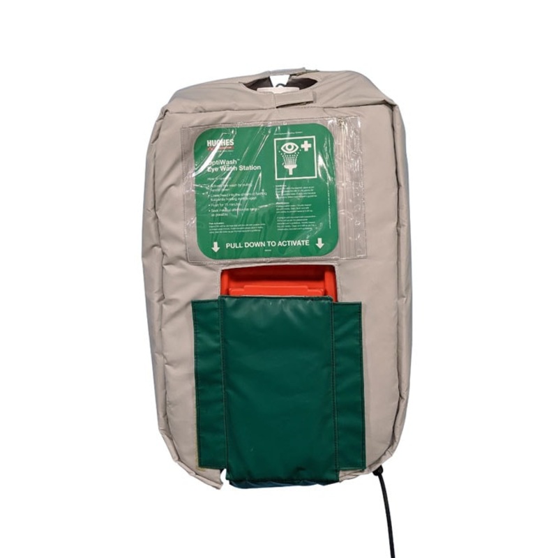 This heated, insulated jacket is the perfect accessory to maintain ANSI compliant tepid water in operating temperatures up to -30F (-34 C). Quickly fits over Hughes model 10GFEW OptiWash 10-gallon eye wash station. Trace tape heated design with 120V, 60/50Hz electrical requirement, includes 10 ft power cord with UL listed, CSA certified GFCI plug. The jacket can be used in cold or warm climates, it’s simple to put on or take off the OptiWash eye wash station. Eyewash sold separately.