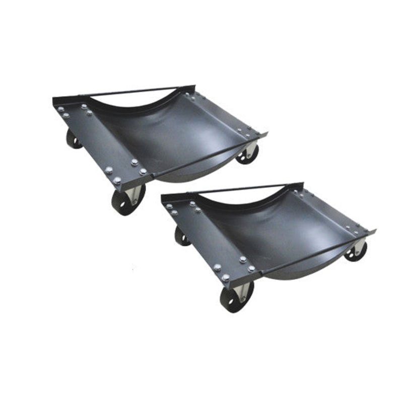 This 1000lbs wheel dolly pair makes it easy to maneuver restoration or disabled vehicles; great for boat and ATV trailers. Heavy-gauge formed-steel frame securely cradles vehicle wheel--can't slip off.Vehicle glides any direction on easy-roll steel ball-be