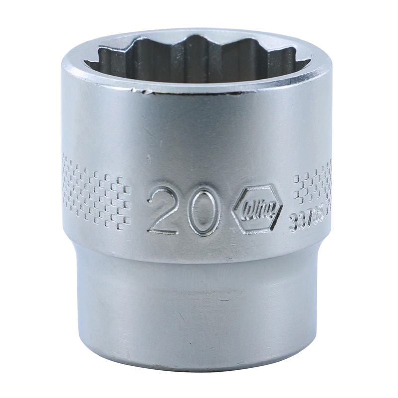 Wiha Professional Series Sockets are available as 6 point - 1/4" drive, 12 point - 3/8" drive, and 12 point - 1/2" drive configurations and feature roll-stamped die markings for clear identification, a knurled band for extra grip, smooth broached and clear