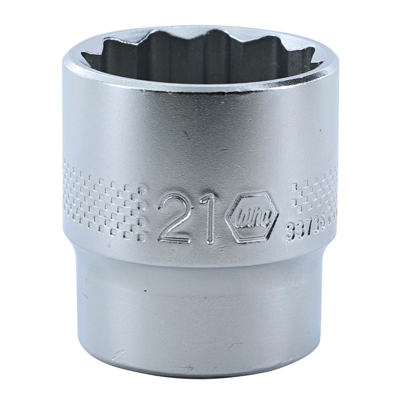 Wiha Professional Series Sockets are available as 6 point - 1/4" drive, 12 point - 3/8" drive, and 12 point - 1/2" drive configurations and feature roll-stamped die markings for clear identification, a knurled band for extra grip, smooth broached and clear