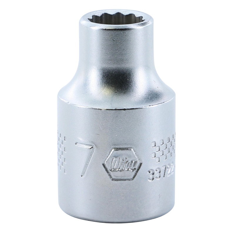 Wiha Professional Series Sockets are available as 6 point - 1/4" drive, 12 point - 3/8" drive, and 12 point - 1/2" drive configurations and feature roll-stamped die markings for clear identification, a knurled band for extra grip, smooth broached and clear
