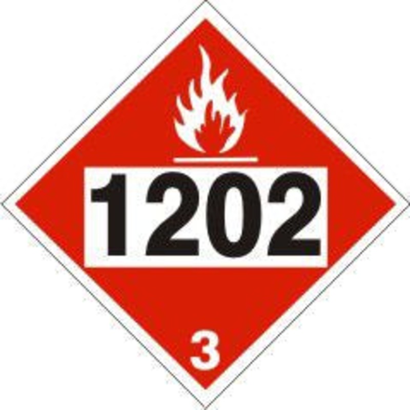 1202 Gas-Oil-Diesel Fuel-Heating Oil Flammable Liquid Hazard Class 3 DOT Placard With Flame Picto, Rigid Vinyl, Red/Black/White, 10.75×10.75″