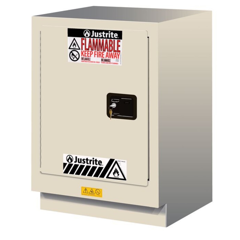 Justrite supplies more than 300 safety cabinet models ranging from 4- to 115-gal (15- to 435-L), to meet a versatile range of safety, compliance, and storage requirements. Our line of under fume hood flammable cabinets are available in four widths ranging from 24 in (610 mm) to 48 in (1219 mm). Single-door cabinets are offered in either left or right-hinge options for easy operation.
