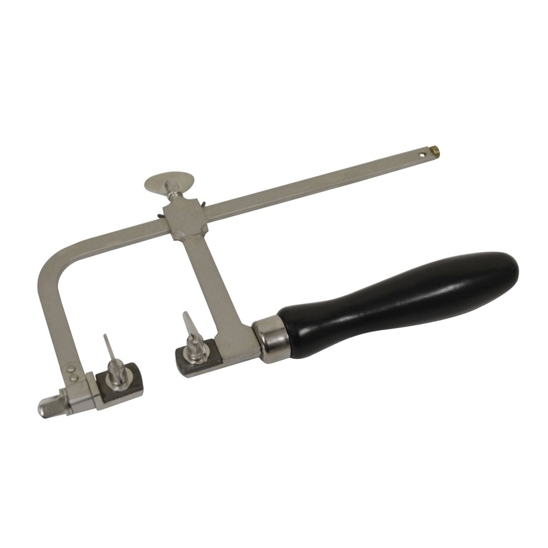 2-1/2" German-Style Economy Saw Frame with Tension ScrewForged from hardened tool steel, this saw frame is easily adjustable to firmly fit a variety of saw blade lengths and tensions. The throat depth measures 63 mm (2-1/2"). Designed with a tension screw.