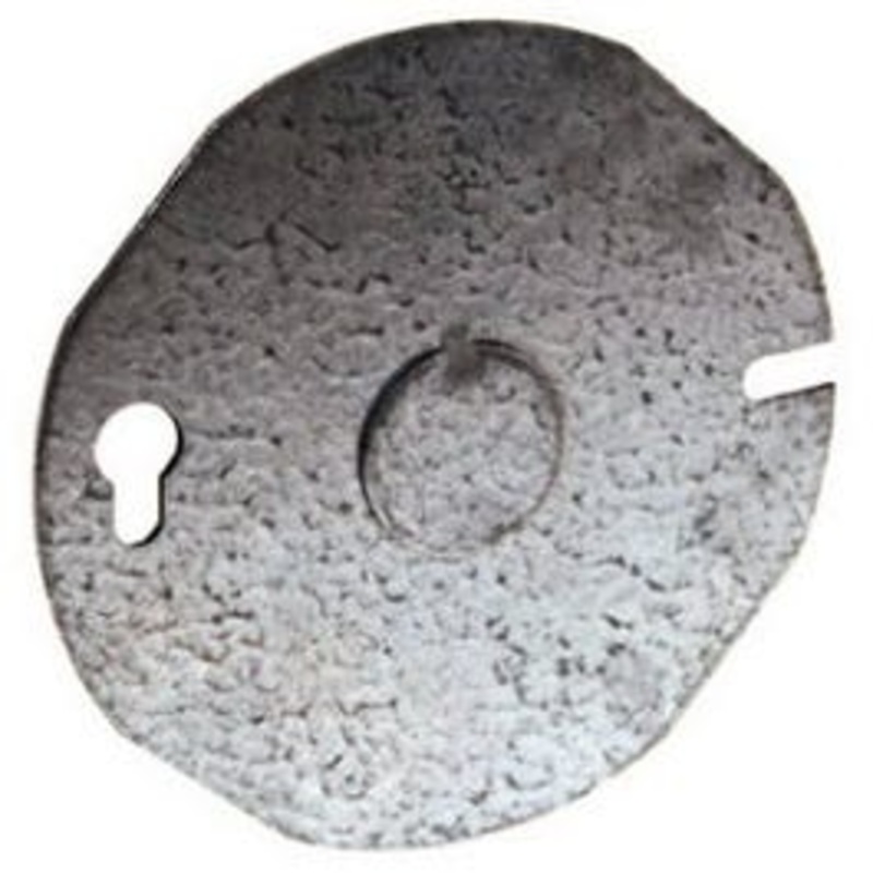 3-1/2″ Round, 1/2″ Knockout Ceiling Box Cover, Steel, Flat.