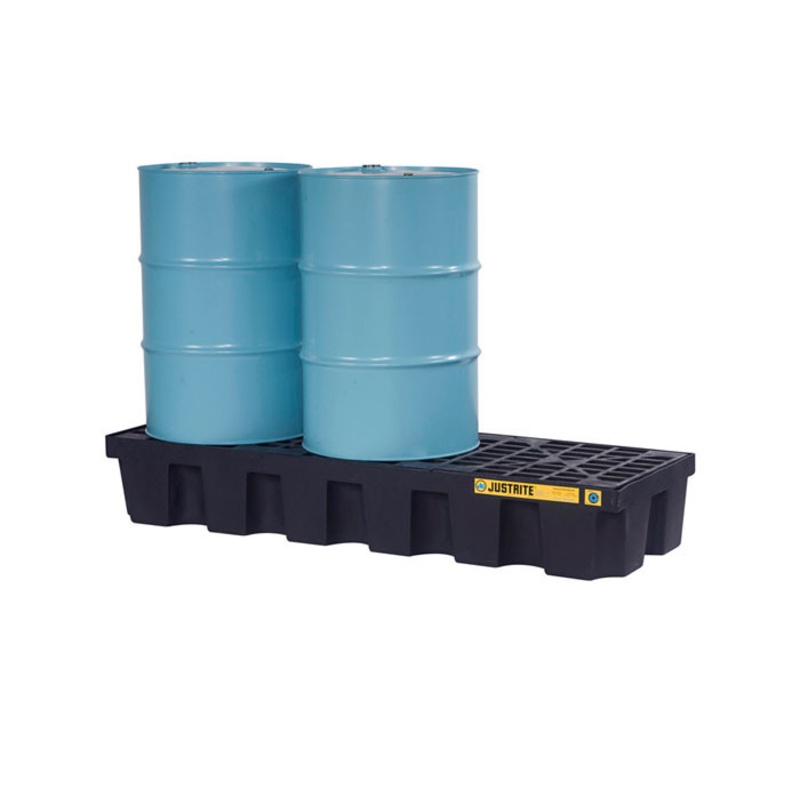 With a net weight of 58 lb (26.3 kg) and uniform distributed load-bearing capacity of 3750 lb (1701 kg) from -30F to 120F (-39C to 49C), Justrite spill control pallets are the safest and most efficient way to store drums inside or outside, any time of year. They are also easy to utilize, with forklift pockets for easy relocation and in-line design that is ideal when space is limited.