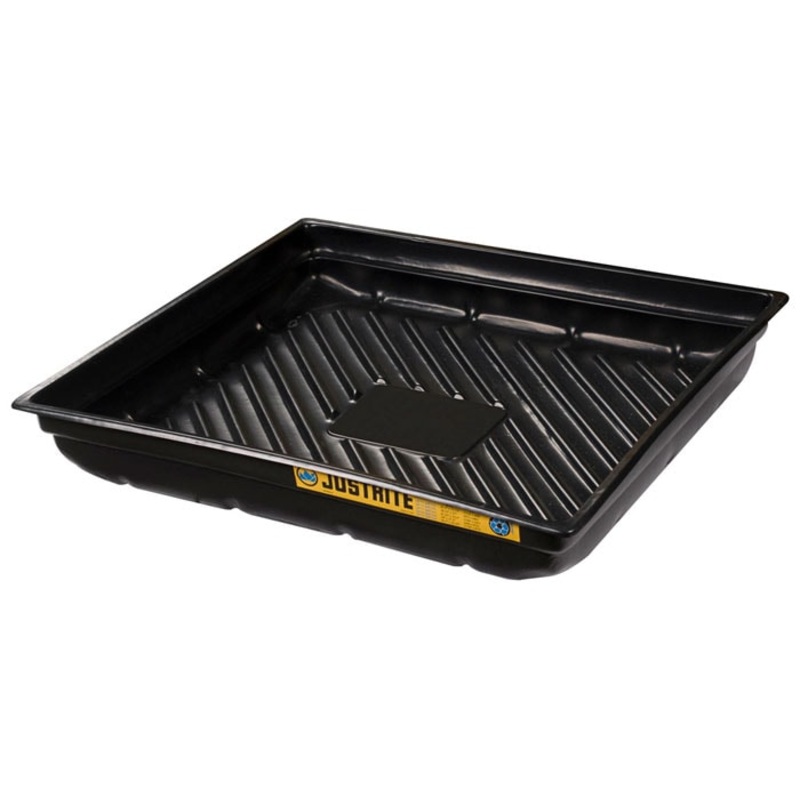The Justrite EcoPolyBlend Spill Tray (black model 28718) is used for small-scale spill control. Its raised rib bottom assembly adds rigidity and keeps contents out of spills, making the tray perfect for pouring and filling applications. This model is suita