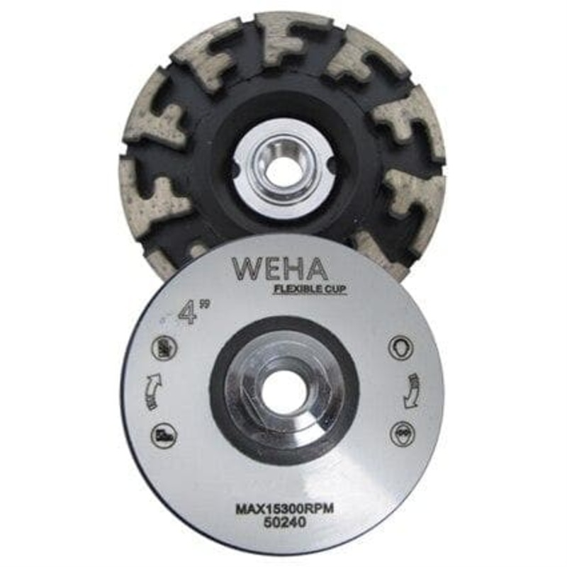 Weha 4" Aggressor Cup Wheel is a Coarse Flexible Silent Flat Rubber Diamond Cup WheelThe Weha 4" Aggressor Rubber Diamond Cup wheel is the latest technology of diamond cup wheels. Diamond Grinding Toolsareavailable for grinding stone and concrete.The Weha