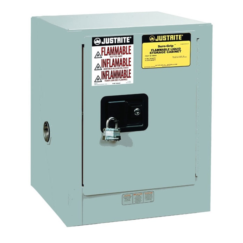 All Justrite cabinets carry a 10-year warranty. Model 890423 complies with OSHA, NFPA 30, NFPA 1 and IFC requirements.
