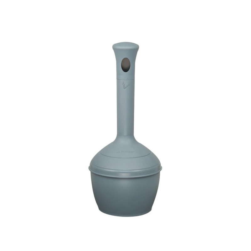 The Elite Smoker’s Ceasefire Outdoor Ashtray in Cool Gray (model 268501) is made with flame-retardant polyethylene, measuring at 38 in (965 mm) in height and 12 inches (305 mm) in outer diameter. When empty, it weighs 10 lbs (4.5 kg) but can be weighed down further with sand or a brick, to improve stability in severe weather. This outdoor ashtray can hold up to 4 gal (15 l) and is both fire tested and FM approved.
