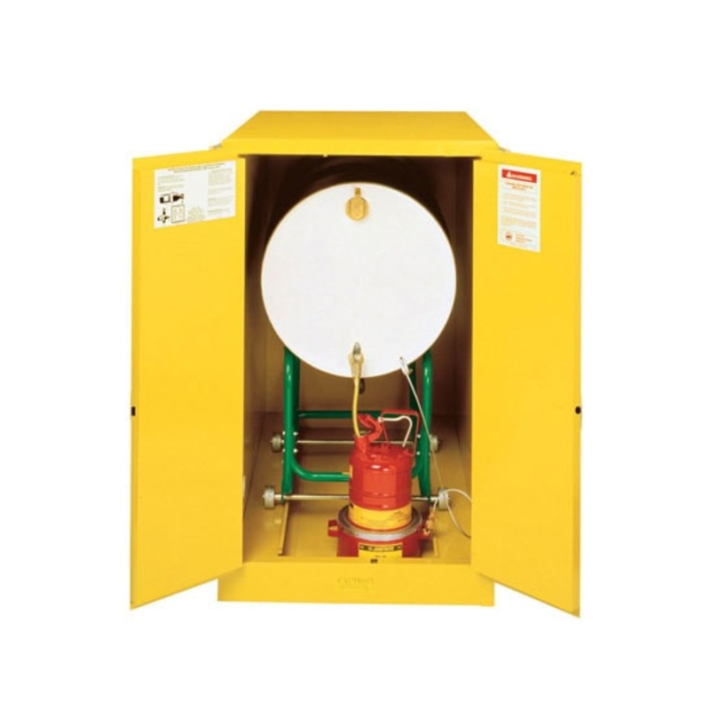 For storage of larger quantities of flammable solvents, the heavy-duty Drum Safety Cabinet isavailable in many styles and sizes. Built to the same high standards as the smallerClassicSafety Cabinets, areinforced liquid-tight sump contains spills. An array of drum accessories and equipment is available to ensure safety and convenience when storing and handling drums of hazardous materials.