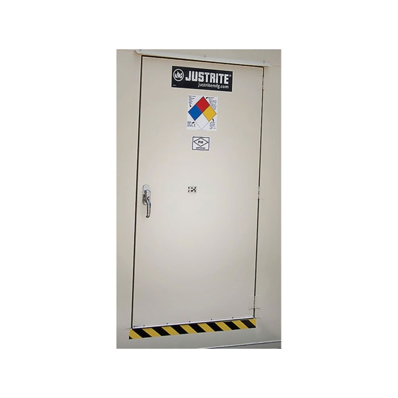 Upgrade to a 54-inch (1372-mm) single door with three-point lock hardware and gain additional clearance for pallets, IBCs and larger items. For use on 6- thru 16-drum non-combustible and 506-cu ft Agri-Turf lockers. This accessory must be purchased in conj