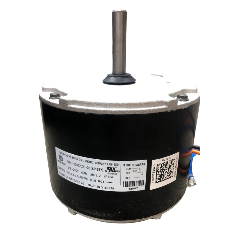 This is a brand new OEM 621827 Nordyne, Miller, Intertherm, Upgraded Replacement Condenser Fan Motor 1/4 Hp 208-230 Volt, 1100 Rpm, CWLE Rotation (New Part # 621917)