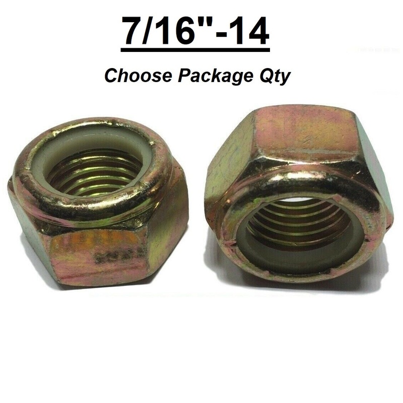 7/16″-14 Grade 8 Nylon Insert Lock Nuts Nylock Yellow Zinc Plated QTY 25
