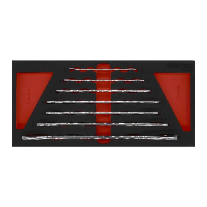 Each wrench is engineered from industrial-grade chrome vanadium steel for exceptional strength and durability, and a mirror chrome finish to protect against corrosion, and wipes clean.Housed in a CNC-cut, two-tone EVA foam insert, this set ensures modular tool storage, professional organization, and long-term efficiency.