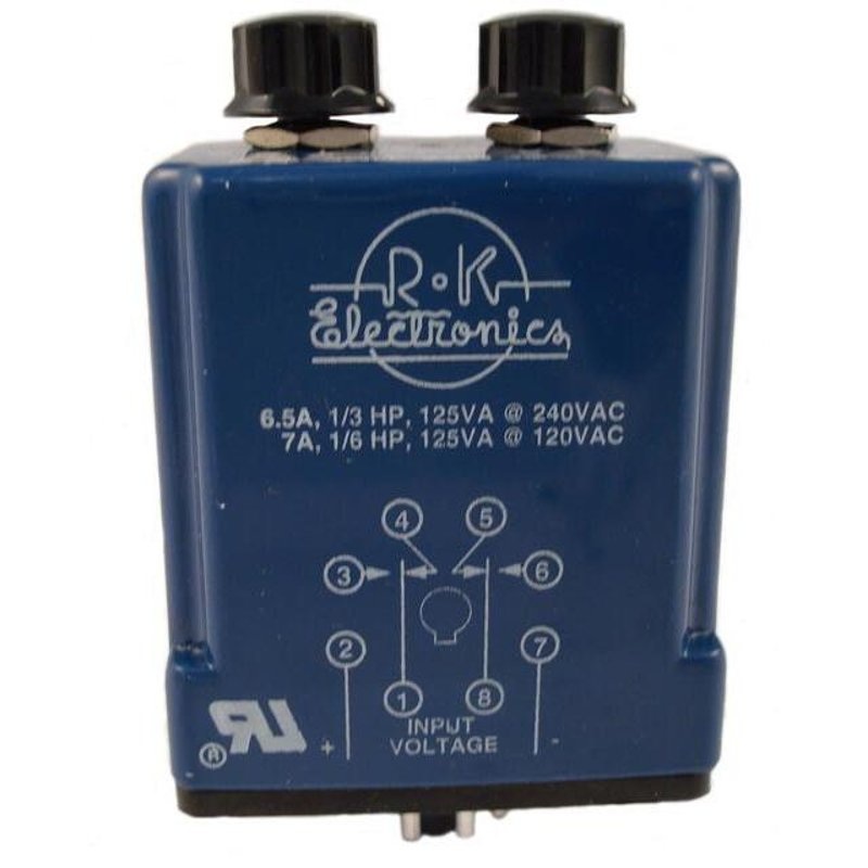 8 Pin, Timing Relay, 240V Rated, 10 Amp, DPDT, 120V Coil, Range: 12 sec to 20 mins. On Delay, 0.2 to 20 mins. Off Delay, Repeat Cycle, Independent On & Off, Digital CMOS Design, Transient Protected.