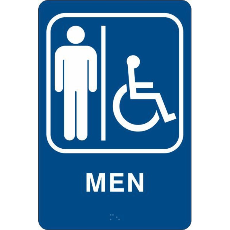 ADA Braille Men Handicap Accessible Restroom Sign With Picto, Acrylic, Blue, 9x6"