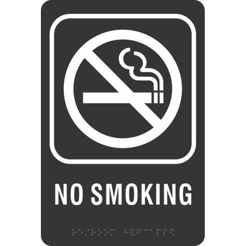 ADA Braille No Smoking Sign With Picto, Acrylic, Black, 9×6″