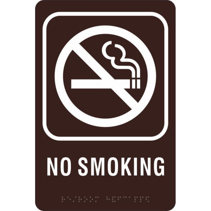 ADA Braille No Smoking Sign With Picto, Acrylic, Brown, 9×6″
