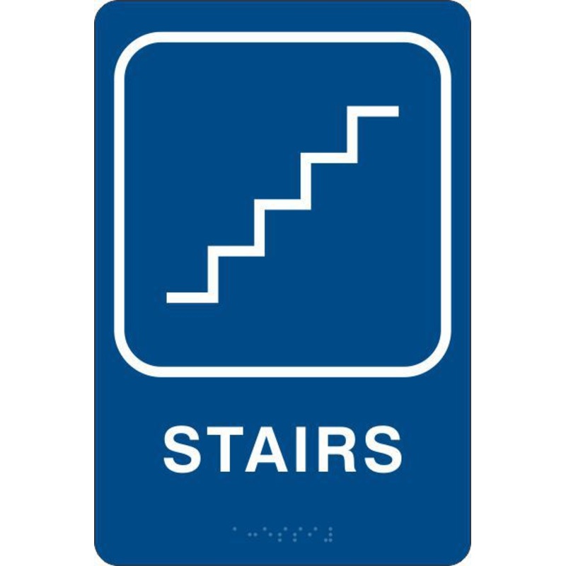 ADA Braille Stairs Sign With Picto, Acrylic, Brown, 9×6″