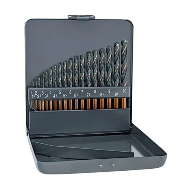 19Pc Sprint Master Drill Bit SetDrill bits includes sizes1mm, 1,5mm, 2.0mm, 2,0mm, 2,5mm, 3,0mm, 3,5mm, 4,0mm, 4,5mm, 5,0mm, 5,5mm,6,0mm, 7,0mm, 7,5mm, 8,0mm, 8,5mm, 9,0mm, 9,5mm& 10,0mmRange of applicationHSS twist drill: toughness and precision combined