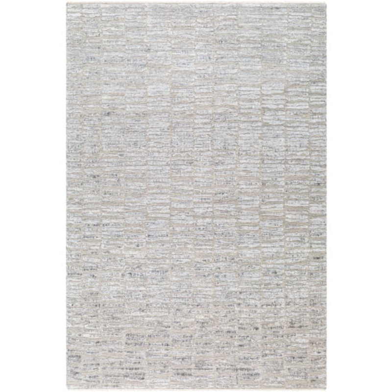 This one-of-a-kind Amina rug will bring a global style to your home. Hand made with a combination of wool and viscose, this medium pile rug is designed for comfort and durability. The hand knotted construction gives it an elegant texture that will last for