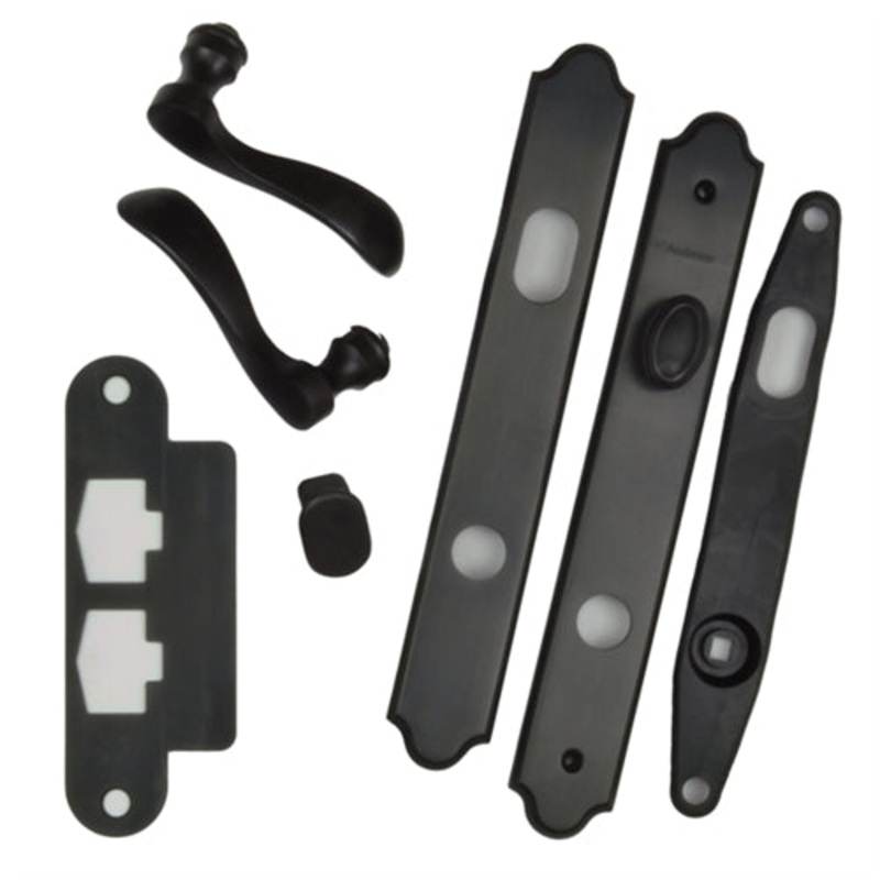 Andersen Covington Style (Single Active) Hinged Door Hardware Set - Oil Rubbed Bronze Finish.Works with 400 Series Frenchwood Hinged (In-Swing and Out-Swing) Patio Doors manufactured from 1988 to Present.Hardware set is for a (single active) hinged door in