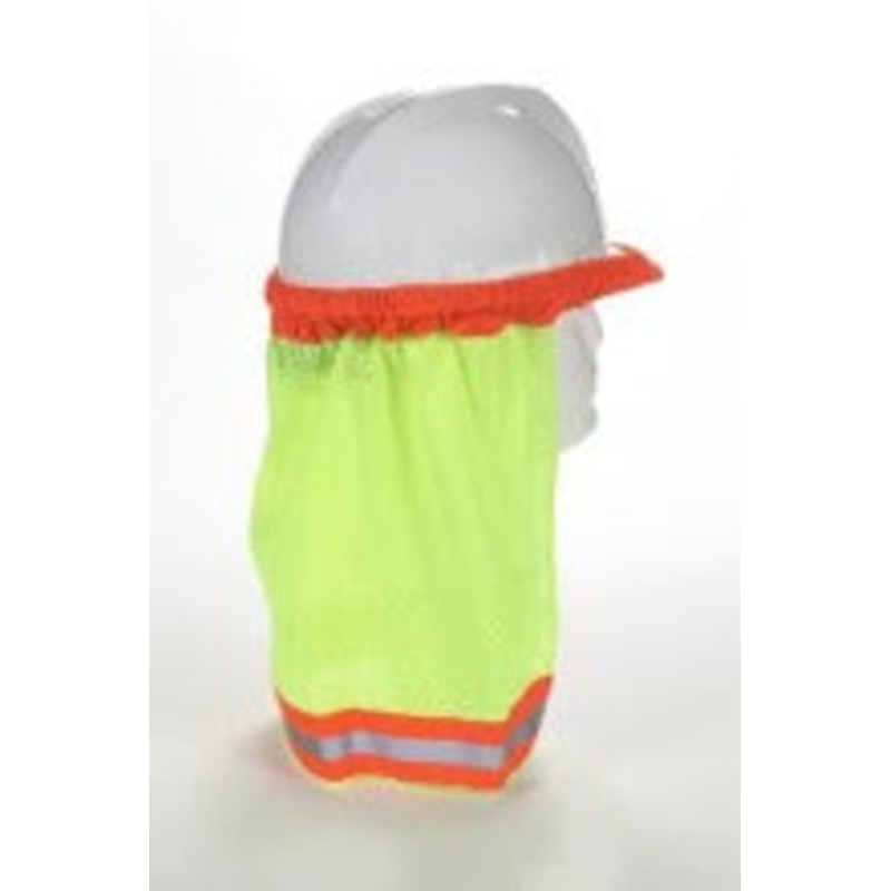 Theselightweight ANSI Mesh Neck Shades block up to99% of the suns harmful UVA and UVB rays. Theyattach easily and securely to hard hats with anelastic edge. Available in high visibility lime with1-1/2 orange/silver/orange reflective stripes or inorange with lime/silver/lime reflective stripes.