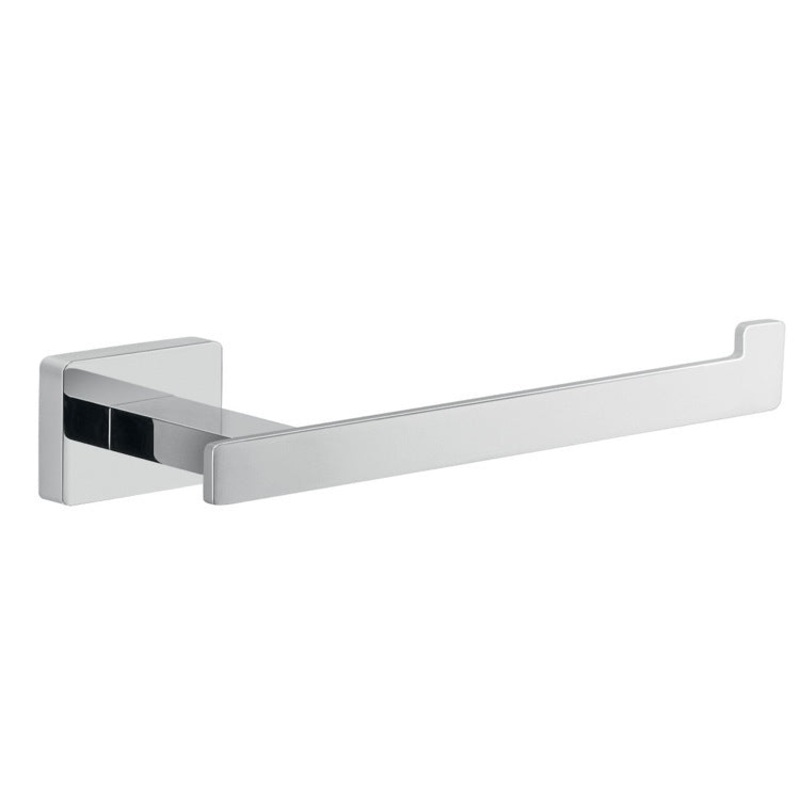Wall mounted toilet paper holder has square mounting plate. Made of cromall and stainless steel. Toilet paper holder was designed with a hook at the end to ensure the roll want come off during use. From the Gedy Atena collection.Chrome Toilet Paper HolderM