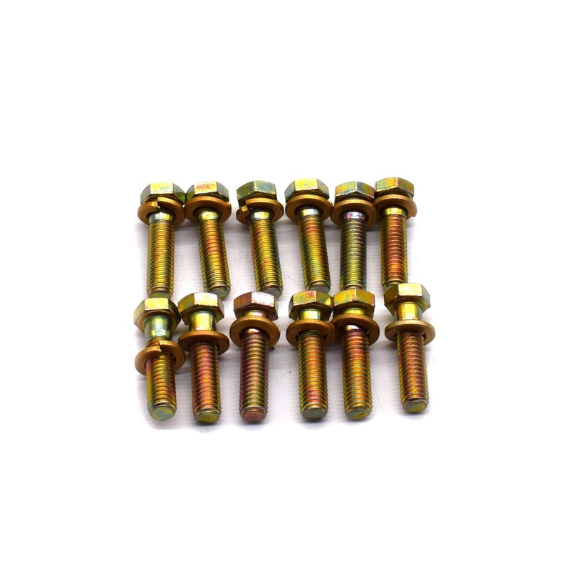 Axle flange to hub bolt kits. This kit includes 12 grade 8 bolts and 12 lock washers. This is an upgraded kit with grade 8 hardware. This is enough bolts for the front axle. Will fit the Dana 25 or Dana 27 front axle. Fits: