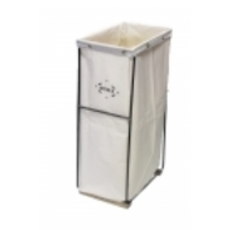 Wire bag holder with 10 oz. Canvas bag and wood runners.. Plain, holder size large. 18 x 18 x 35 approx wgt. 12 lbs