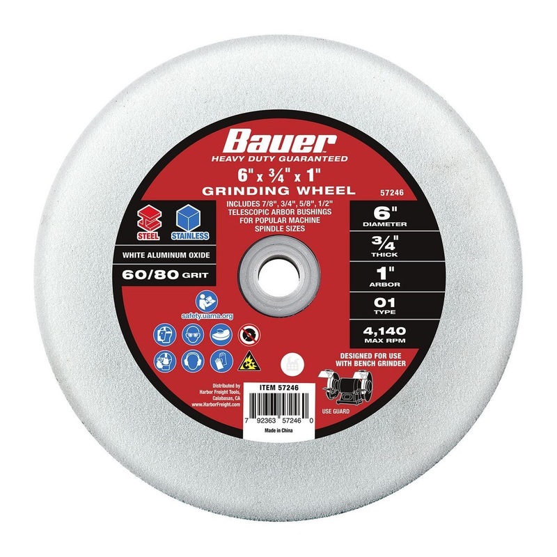 The BAUER bench grinding wheel uses high quality aluminum oxide abrasive for long lasting performance. Get the best results when grinding, smoothing, shaping metal and removing weld slag.Superior grain aluminum oxide abrasive is continuously exposed during