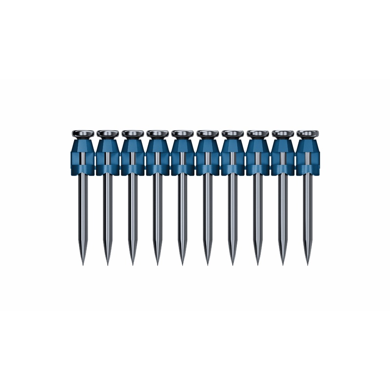 Bosch collated concrete nails are designed for use with the GNB18V-12 cordless 18V Concrete Nailer. Ideal for framing, the fasteners attach metal tracks to concrete. The Bosch 18V concrete nailer comes with both a 22-shot collated magazine (an extra-capacity magazine, which can hold up to 44 collated pins, is sold separately), and a single shot nose piece. The nails and the GNB18V-12 Concrete Nailer were tested and certified together (ICC). The cordless nailer is an ideal replacement for gas-powered concrete nailers, because it eliminates the need for consumable gas cartridges. The easy-to-use depth adjustment uses an intuitive sliding switch. The nails are available in five different lengths, from 5/8 In. to 1-1/2 In.