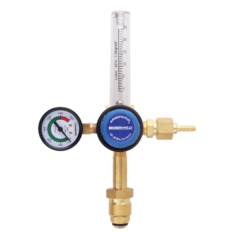 Bossweld Dual Stage Argon Regulators are designed for use with TIG and MIG welding processes. Advantage of a dual stage regulator is its ability to deliver a constant pressure, even with a decrease in inlet pressure (cylinder content), giving the welder an