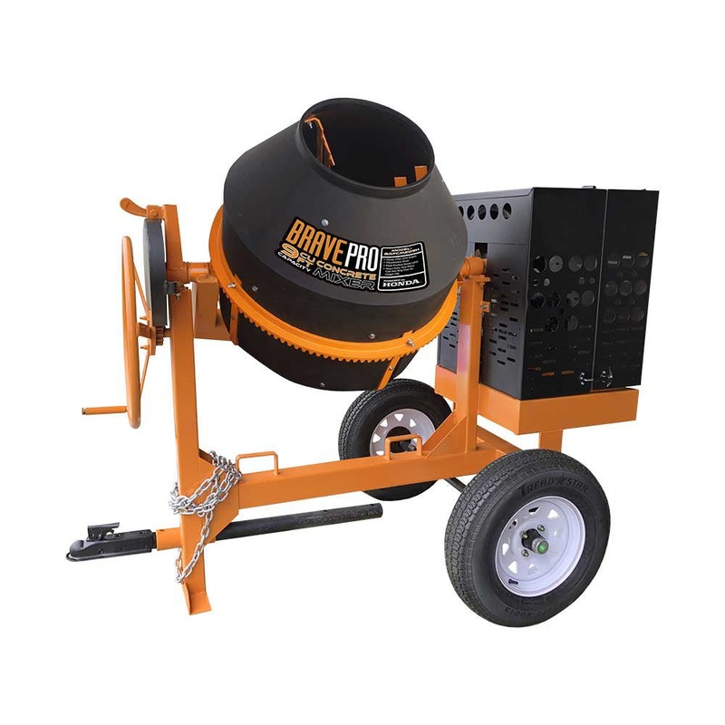 The Brave poly drum concrete mixer is built tough to handle every job.This wheelbarrow-style mixer is easy to transport so it can reach the job no matter where it is. Multiple features encourage increased productivity while the enclosed engine decreases ma