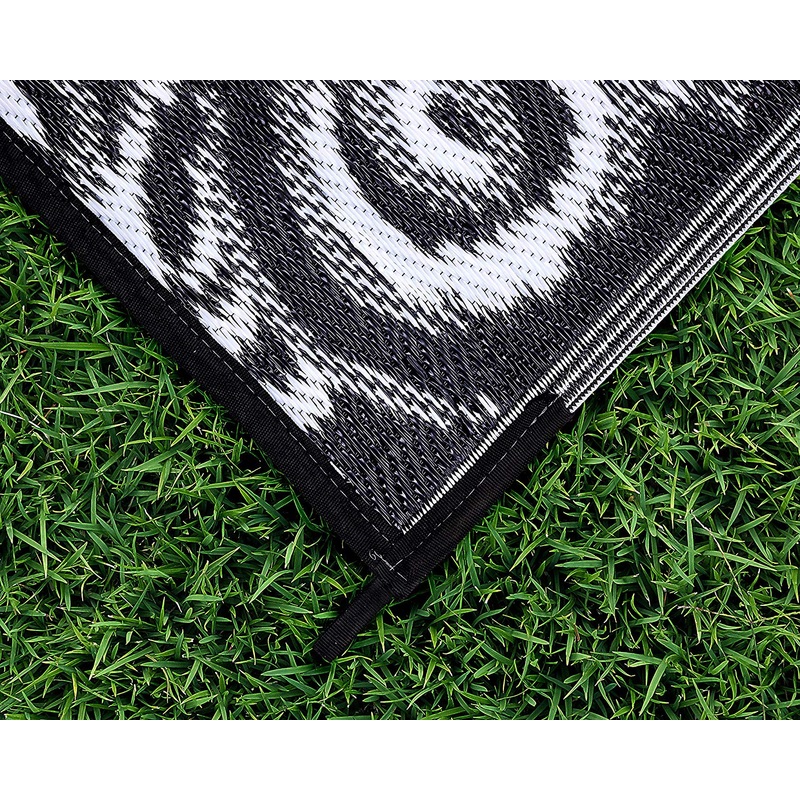 Patio Mat; 8 Foot x 16 Foot; Charcoal Swirl; Mold and Mildew Resistant Material; Reversible Fabric; Without Grommets; With Corner Tie Down Loops; Without Storage Bag