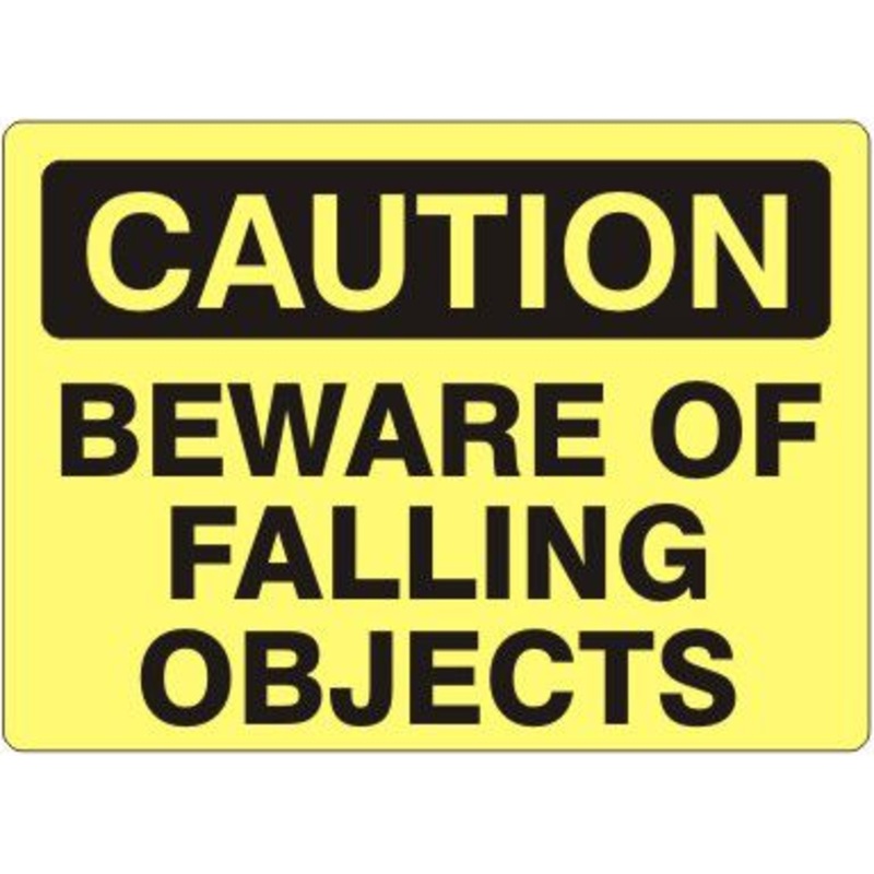 Caution Beware Of Falling Objects Label, Adhesive Vinyl, Black/Yellow, 14×20″