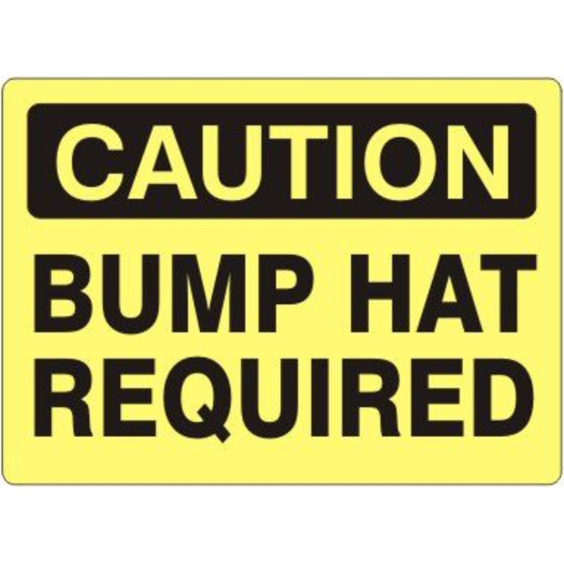 Caution Bump Hat Required Sign, Plastic .040, Black/Yellow, 7x10\