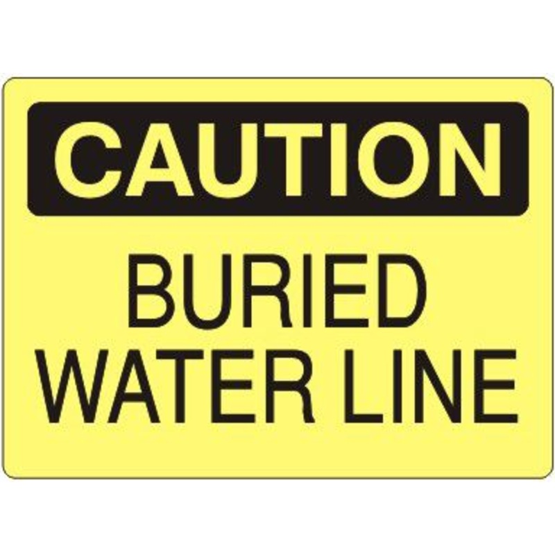 Caution Buried Water Line Sign, Plastic .040, Black/Yellow, 10x14\
