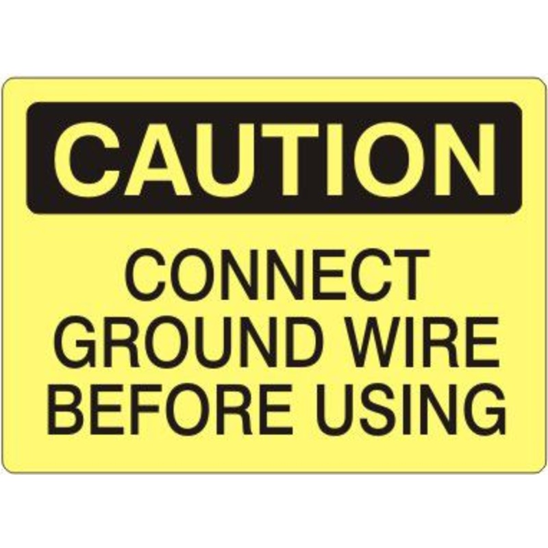 Caution Connect Ground Wire Before Using Sign, Fiberglass, Black/Yellow, 10×14″