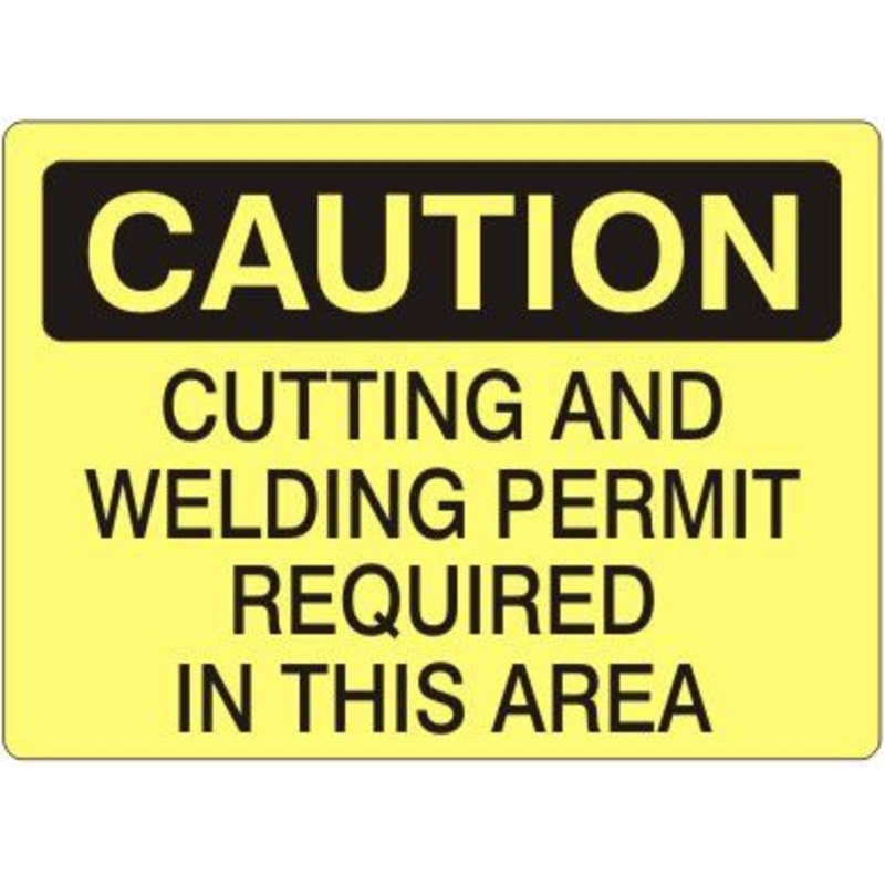 Caution Cutting And Welding Permit Required In This Area Label, Adhesive Vinyl, Black/Yellow, 7x10"