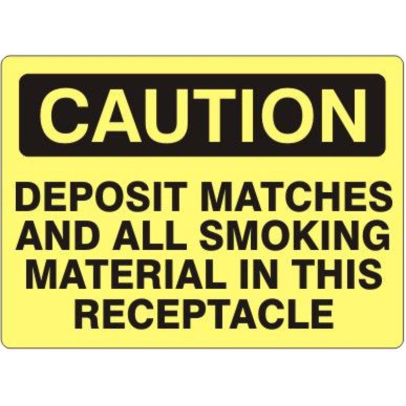 Caution Deposit Matches And All Smoking Material In This Receptacle Sign, Fiberglass, Black/Yellow, 10x14"
