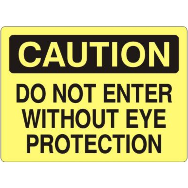 Caution Do Not Enter Without Eye Protection Label, Adhesive Vinyl, Black/Yellow, 7×10″