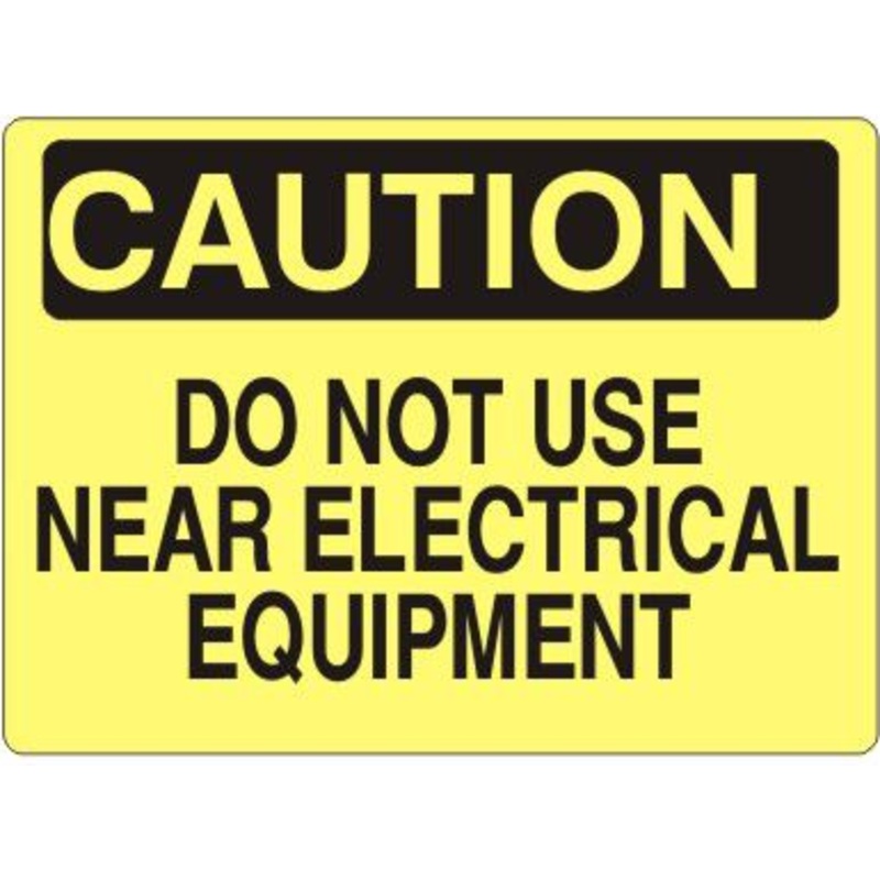 Caution Do Not Use Near Electrical Equipment Label, Adhesive Vinyl, Black/Yellow, 7×10″