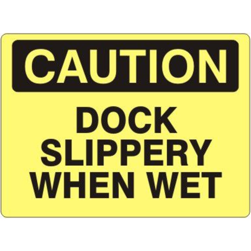 Caution Dock Slippery When Wet Label, Adhesive Vinyl, Black/Yellow, 10x14"