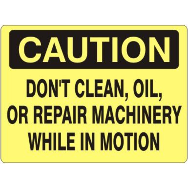 Caution Don’t Clean Oil Or Repair Machinery While In Motion Sign, Plastic .040, Black/Yellow, 7×10\
