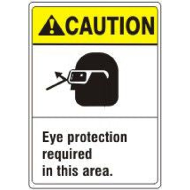 Caution Eye Protection Required In This Area. Sign With Eye Protection Picto, Plastic .040, Black/White/Yellow, 14x10\