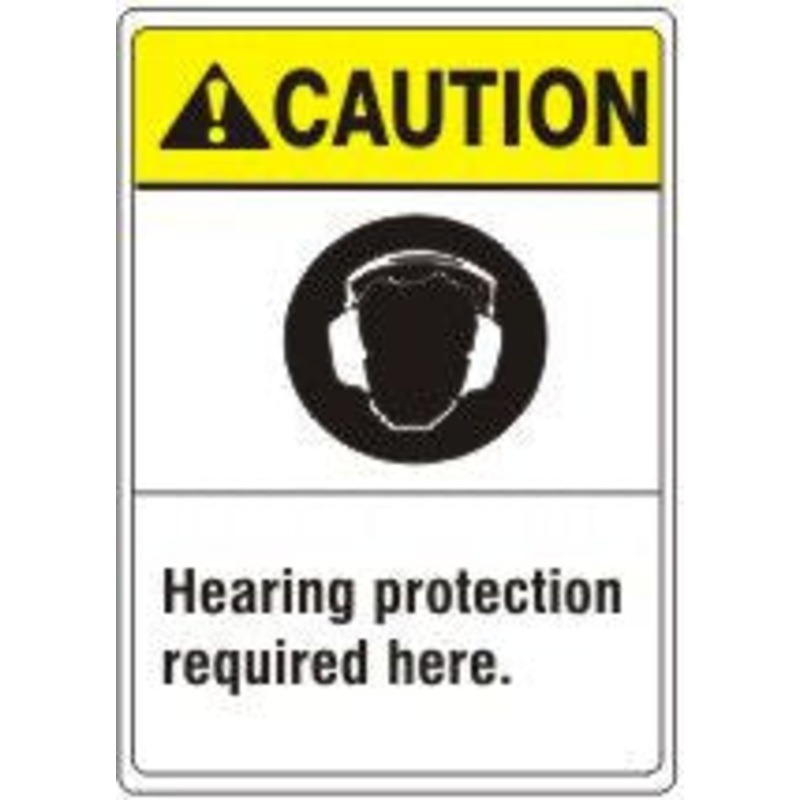 Caution Hearing Protection Required Here. Sign With Ear Protection Picto, Plastic .040