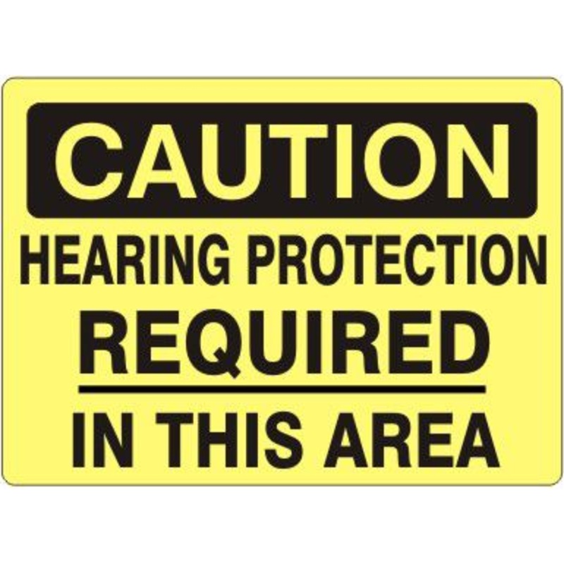 Caution Hearing Protection Required In This Area Label, Adhesive Vinyl, Black/Yellow, 7x10"